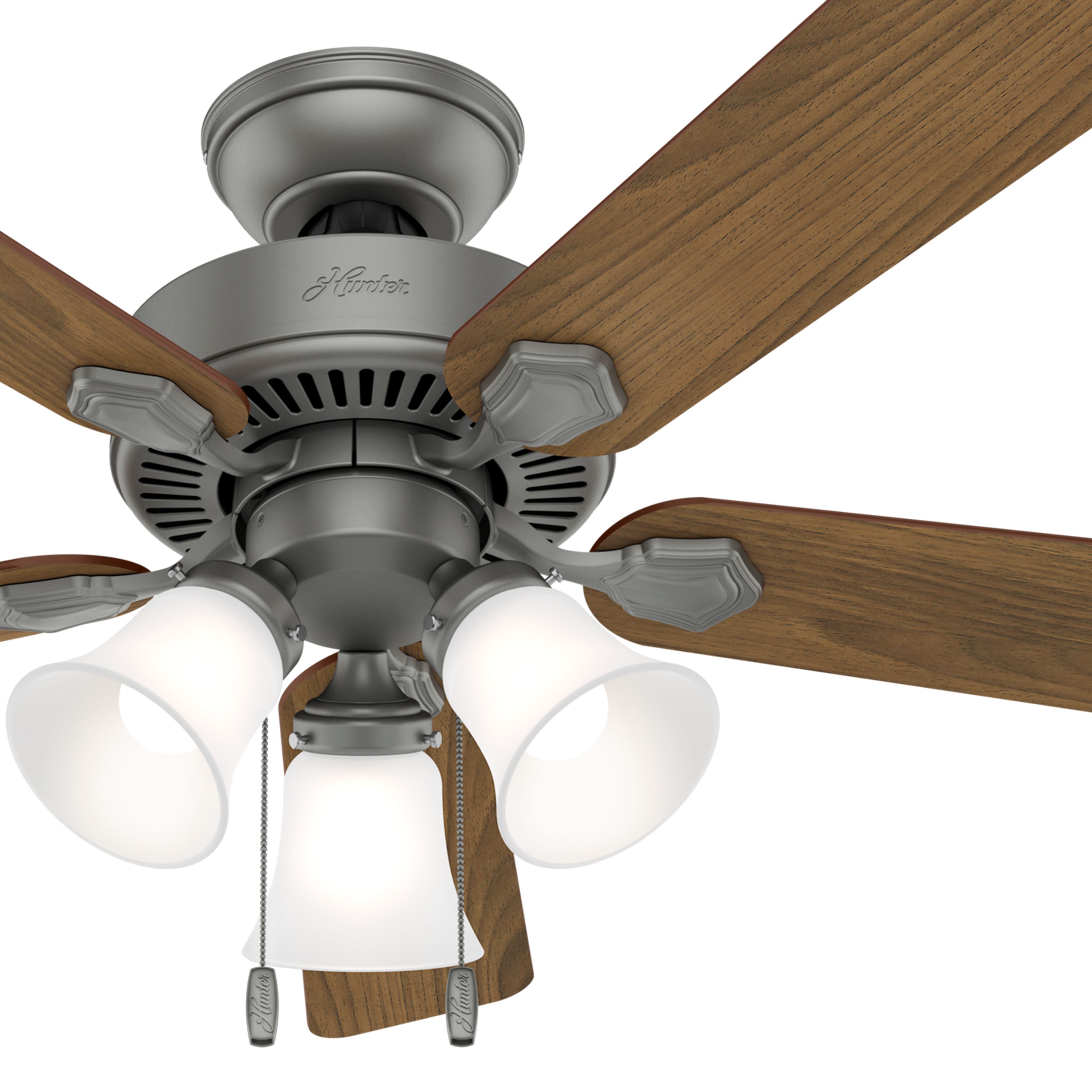 2. Hunter Fan 44 inch Indoor Traditional Matte Silver Ceiling Fan with Light Kit (Renewed)
